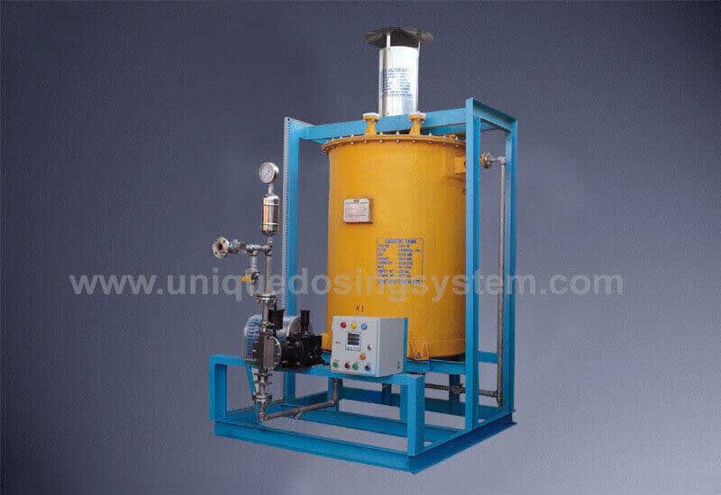 Descent Mounted Dosing Systems We're Skid Mounted Dosing System Manufacturers and Design as per transnational norms & client conditions. Each and every element is checked as per the quality norms before manufacturing the dosing system. All factors are calculate as per the discharge pressure of the dosing pump for safety preventives of the systems. These descent mounted dosing packages are used for chlorine dosing system, boiler chemical dosing, oil painting heating & Pumping units and other similar duties.